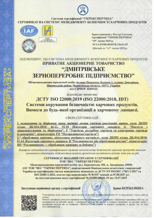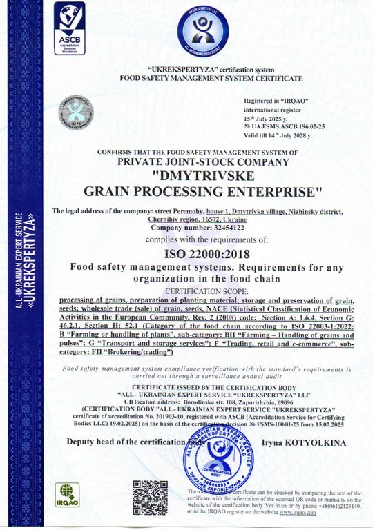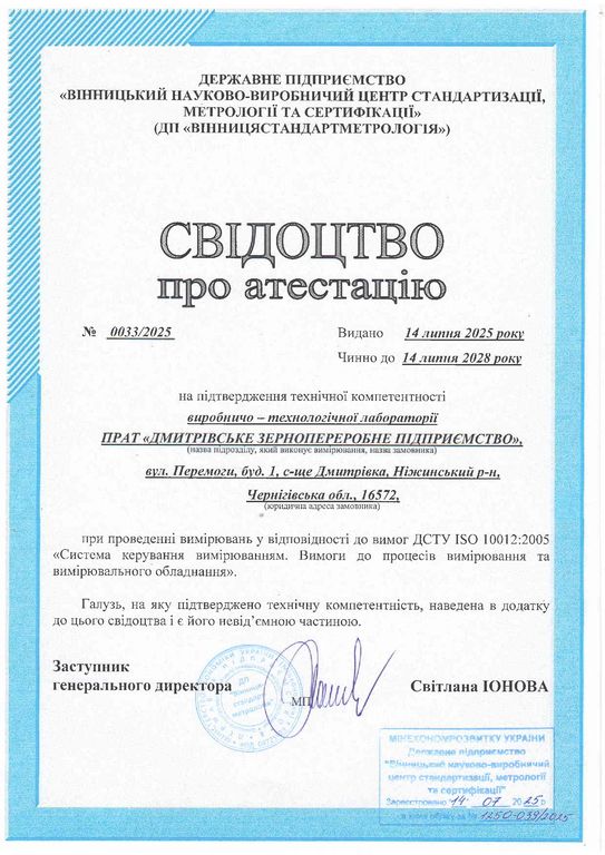 - Контроль якості зерна здійснює сертифікована лабораторія